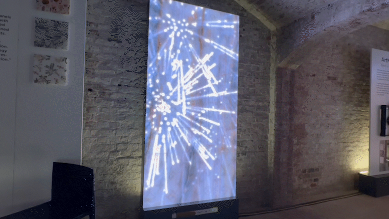 When activated, a classic textured concrete wall undergoes a magical transformation, revealing a captivating map of London from 1864. The clever use of color and light highlights the river, parks, train tracks, and points of interest, while vibrant moving images add drama, contrast, and surprise. This innovative feature allows you to conceal any information and create a stunning reveal, perfect for surprising and delighting viewers in any setting.