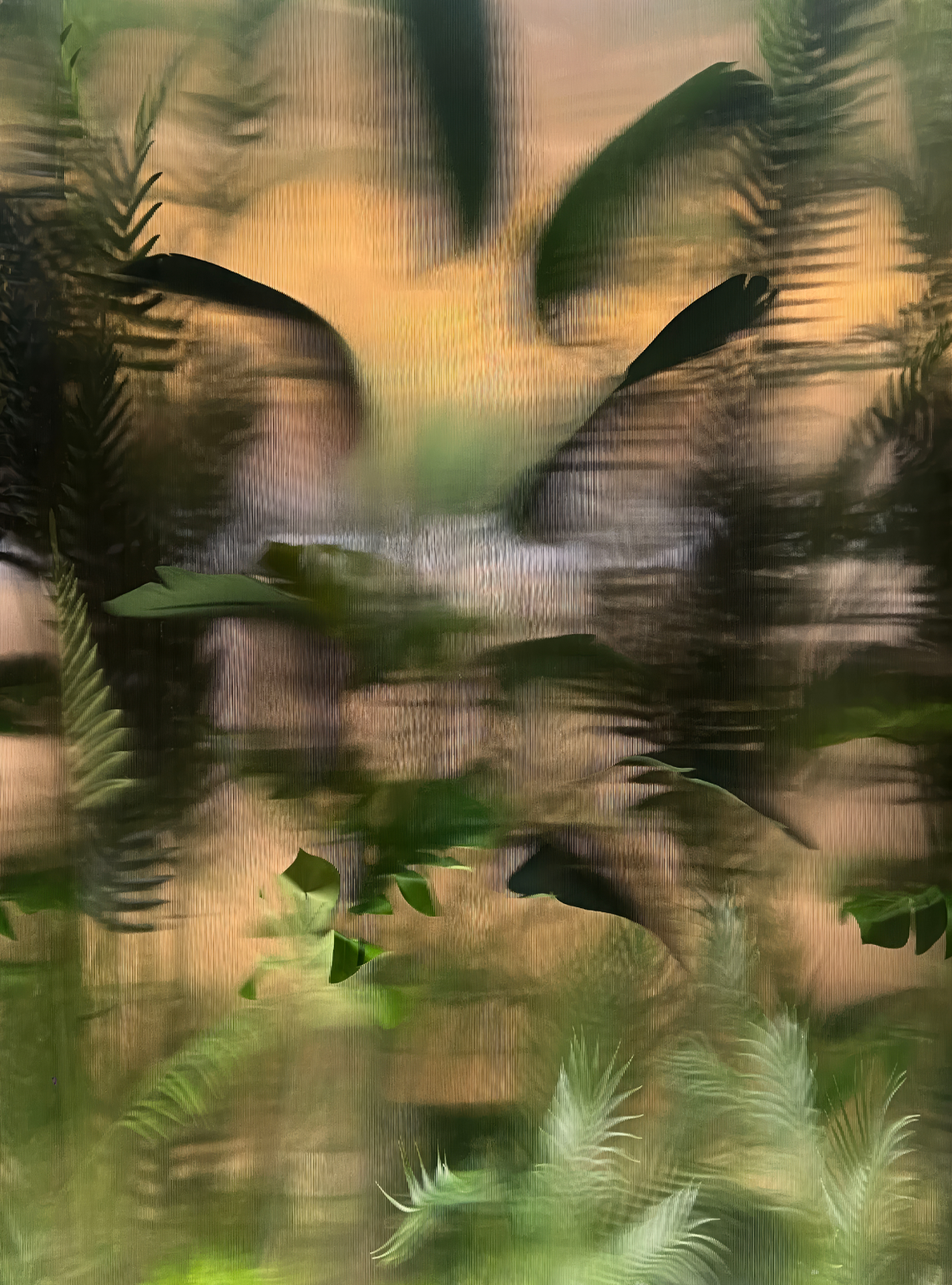 When not illuminated, it presents a tranquil scene of lush plants visible through textured glass. When illuminated, it magically transforms into a vibrant jungle - from sunrise to a bright daytime landscape, to sunset, and into the night. An animated monkey, butterflies, and birds appear intermittently to add fun and delight. The design beautifully demonstrates how lenticular effects can offer an ever-changing visual experience.