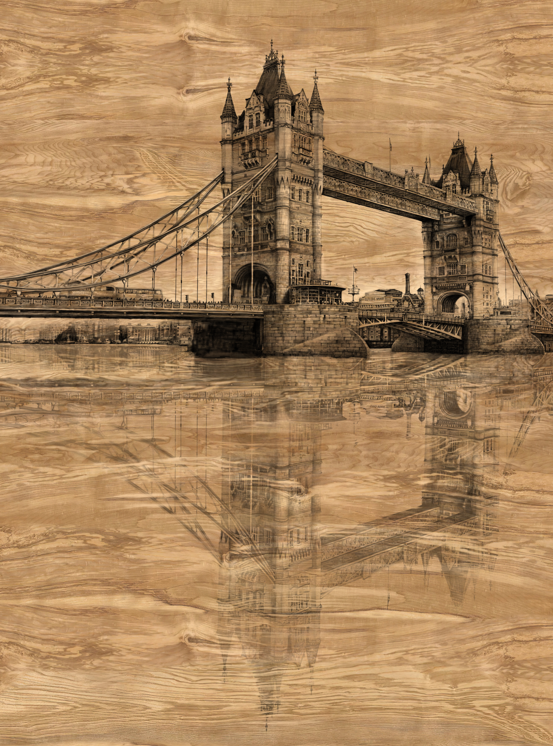 In its dormant state, it presents a classic wood etched sketch of Tower Bridge. However, when illuminated, this design undergoes a breathtaking transformation. The iconic bridge comes alive, reflecting the golden hues of sunrise and sunset, casting shadows under dramatic clouds, enlivened by seabirds soaring across the horizon. It’s a testament to how dynamic lighting can elevate and animate even the most traditional of designs