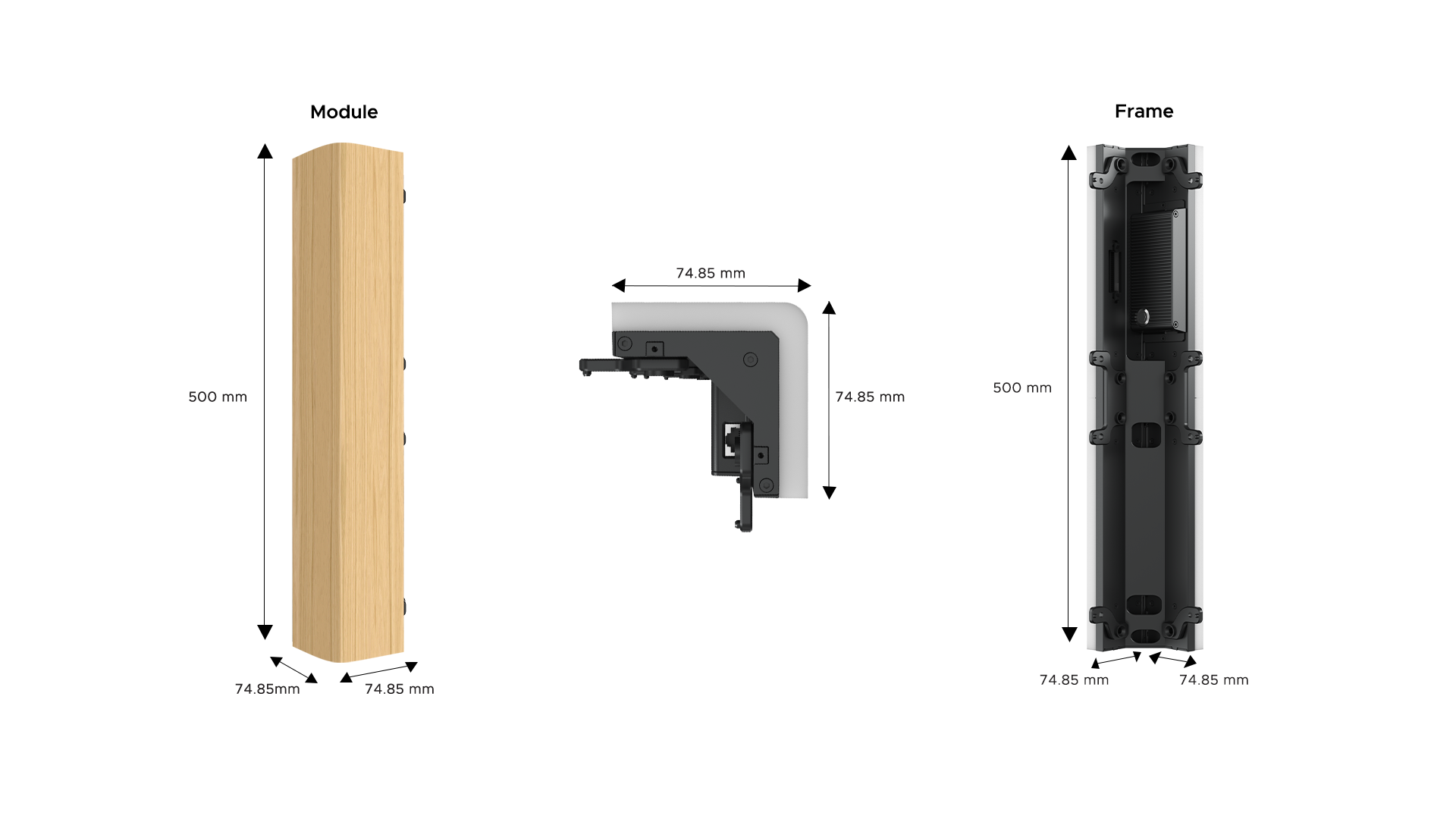ArtMorph Edge measures 500×82.8×82.8 mm, optimized to fit standard ArtMorph panel dimensions while covering edges effectively.