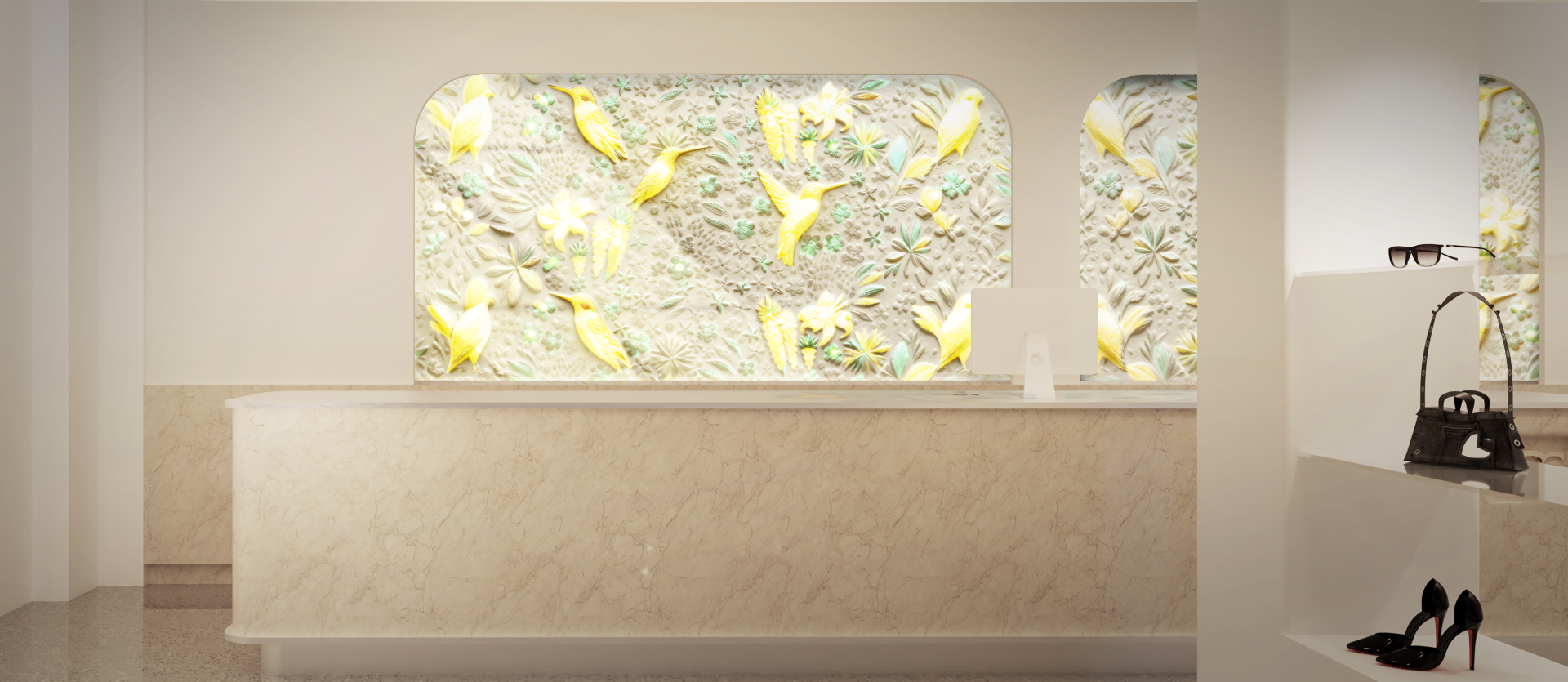 A textured luminous panel that integrates natural materials with high-definition animated LED displays, offering refined clarity ideal for close-range viewing. With customizable textured covers, it blends seamlessly into any space.