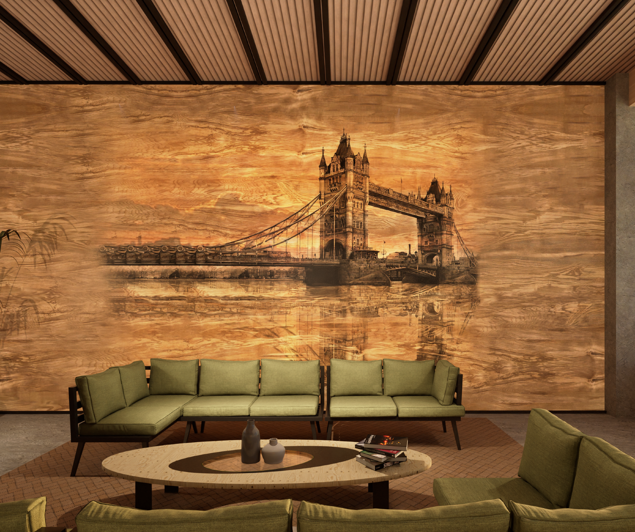 A textured luminous panel that integrates natural textures with animated LED displays.