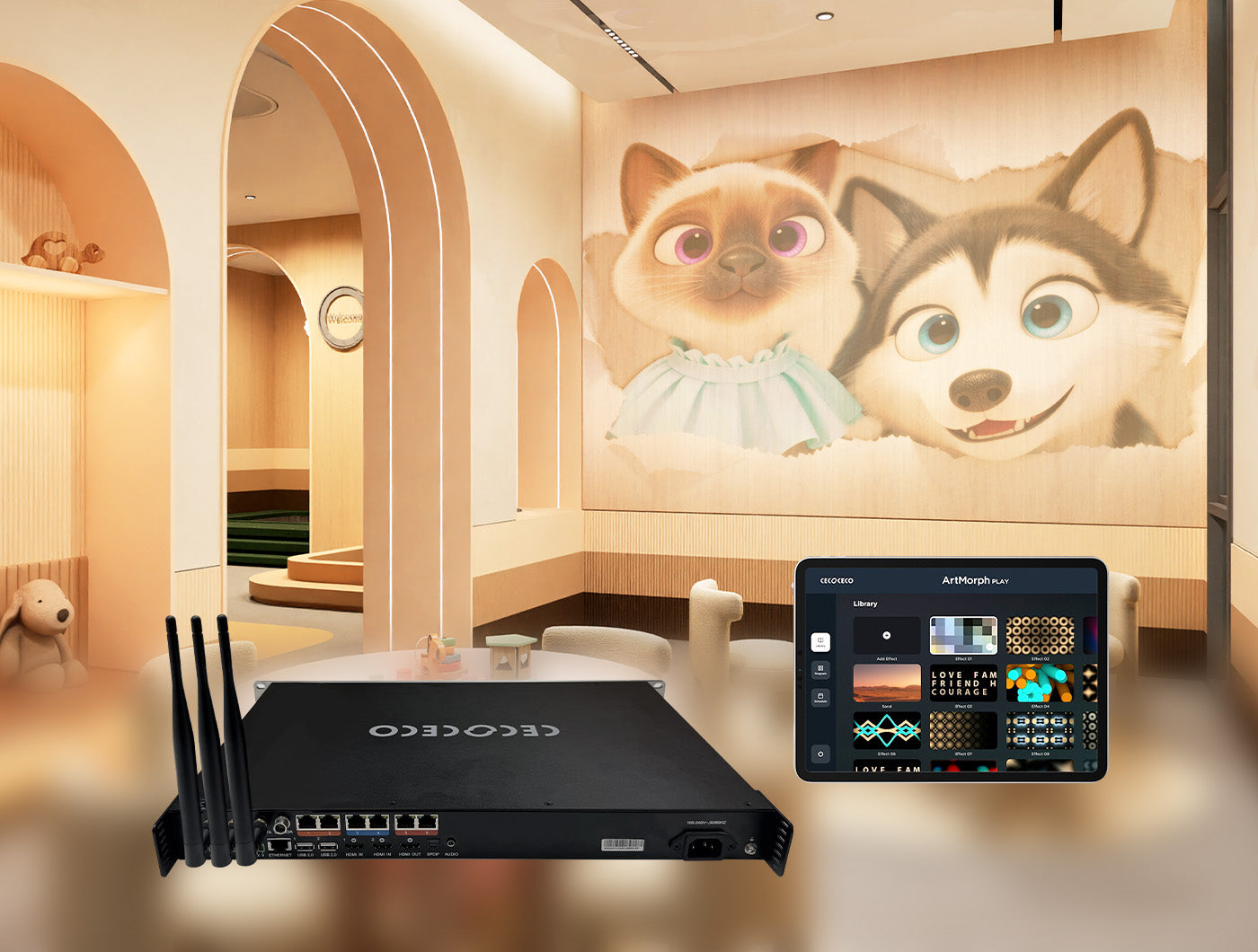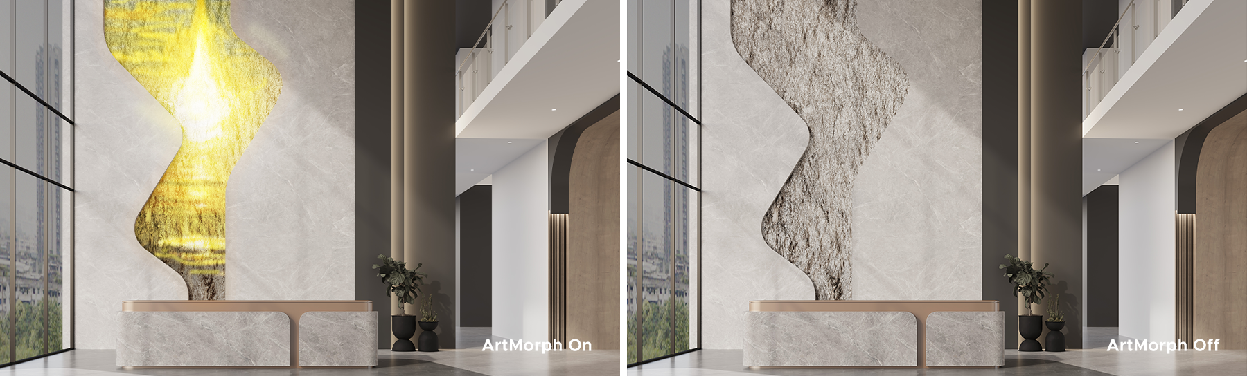 ArtMorph Grande can be easily integrated with sensing devices, unlocking interactive functions. Transform spaces with dynamic, responsive features that engage and captivate.