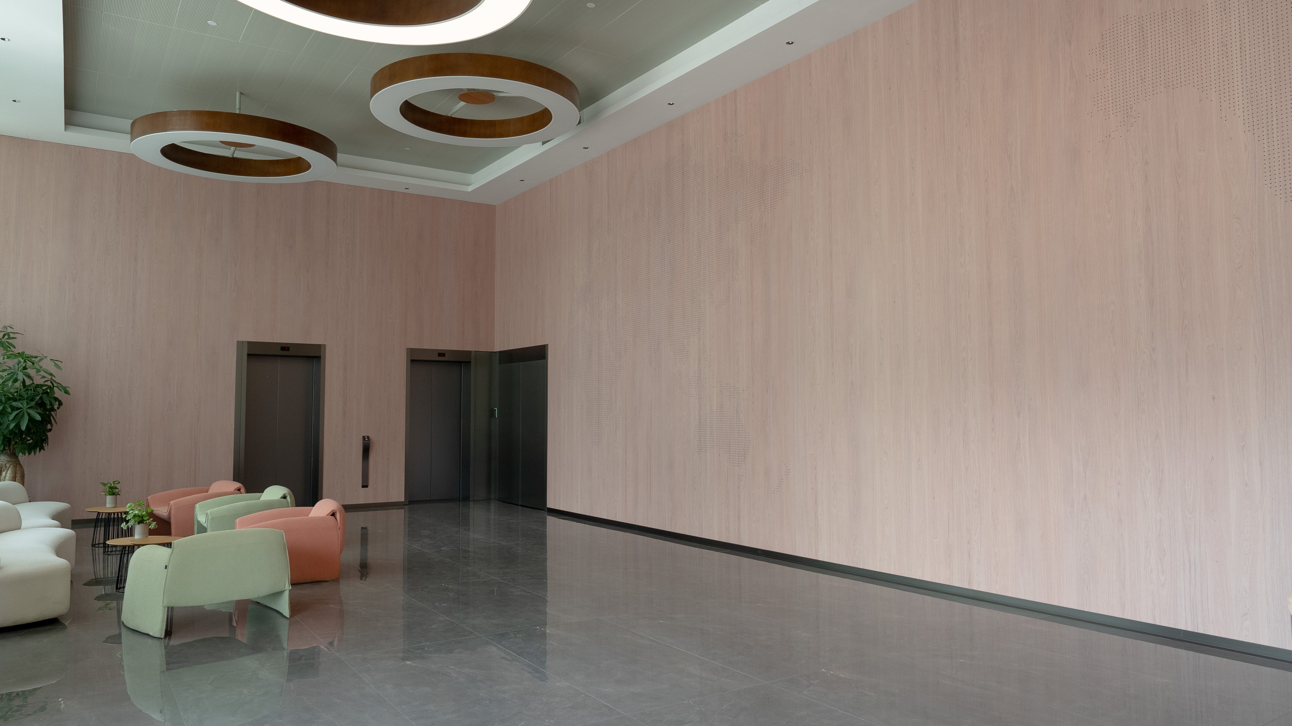 In the renovation brief, the two main lobby walls were identified as key feature surfaces. They needed to remain consistent with the overall interior style while also functioning as display carriers for corporate content, welcome messages, and other visual communication.