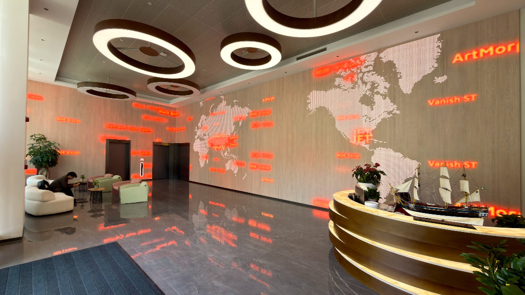 ROE Visual selected ArtMorph Grande as the design solution. The design concept focused on creating a lobby environment where aesthetics, brand expression, and functional display requirements coexist seamlessly.